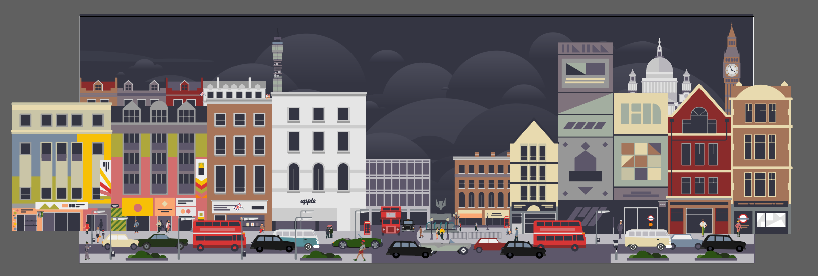 The challenge was to develop a visual style that would be efficient to produce on a large scale within the project's timeline while still feeling expressive and distinct to captivate the viewer's attention and sense